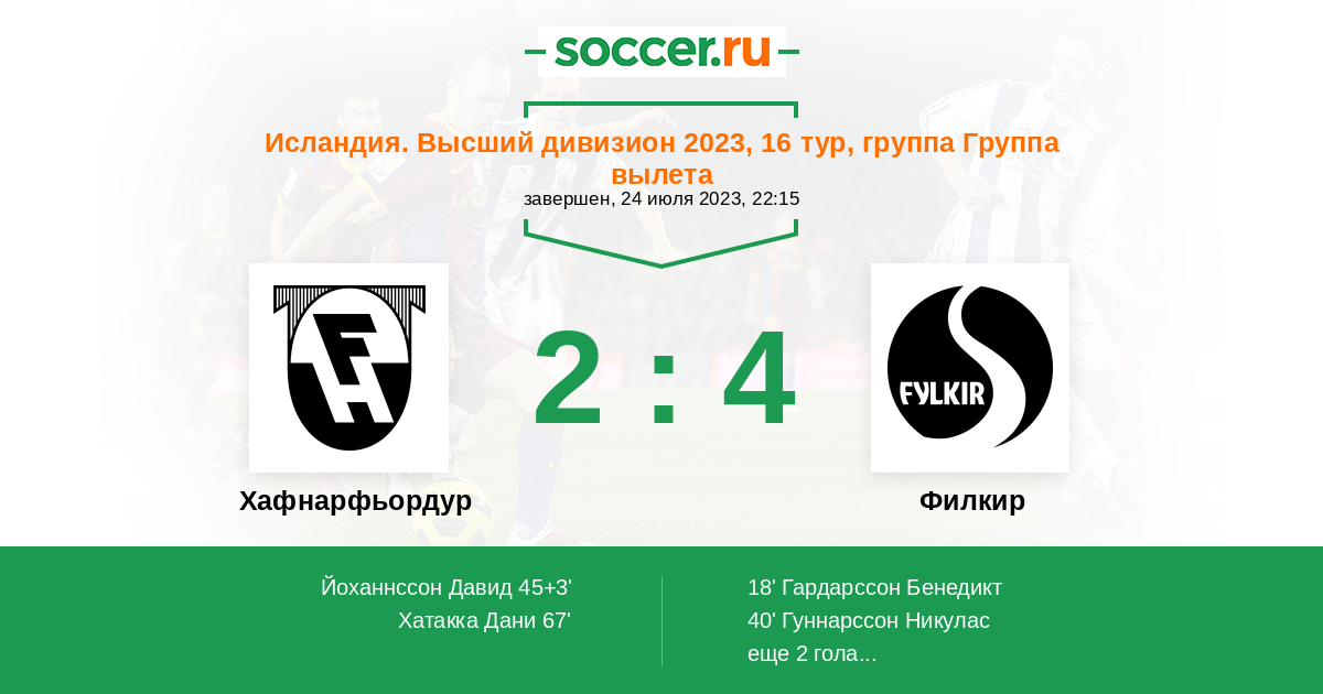 Гол90+5' (2:4) Боргпорссон Оскар (77) (Стефанссон Омар (22))