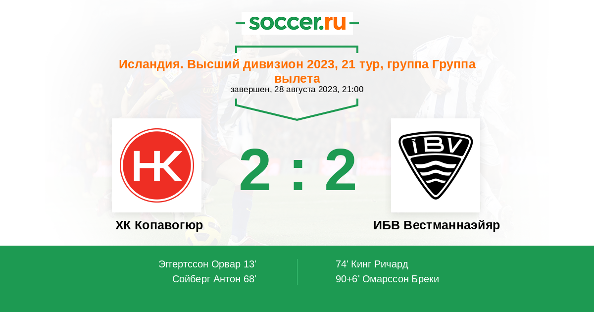 Протокол матча ХК Копавогюр против ИБВ Вестманнаэйяр