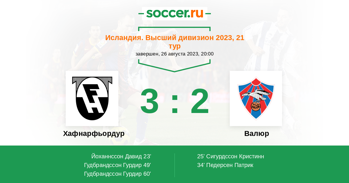 60' (3:2) Гудбрандссон Гурдир (5) (Гудмундссон Олафур (4))