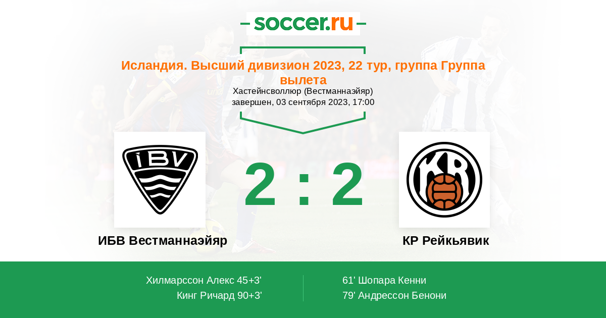 Протокол матча ИБВ Вестманнаэйяр против КР Рейкьявик
