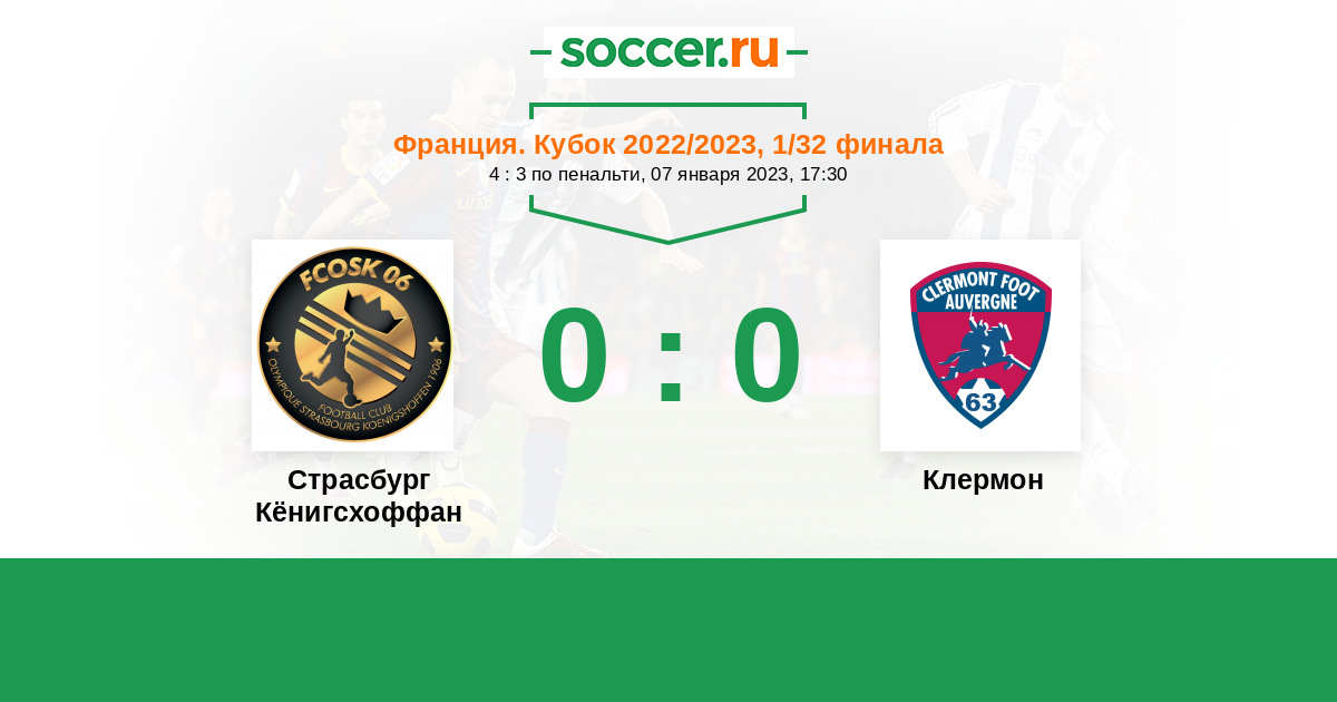 Протокол матча Страсбург Кёнигсхоффан против Клермон