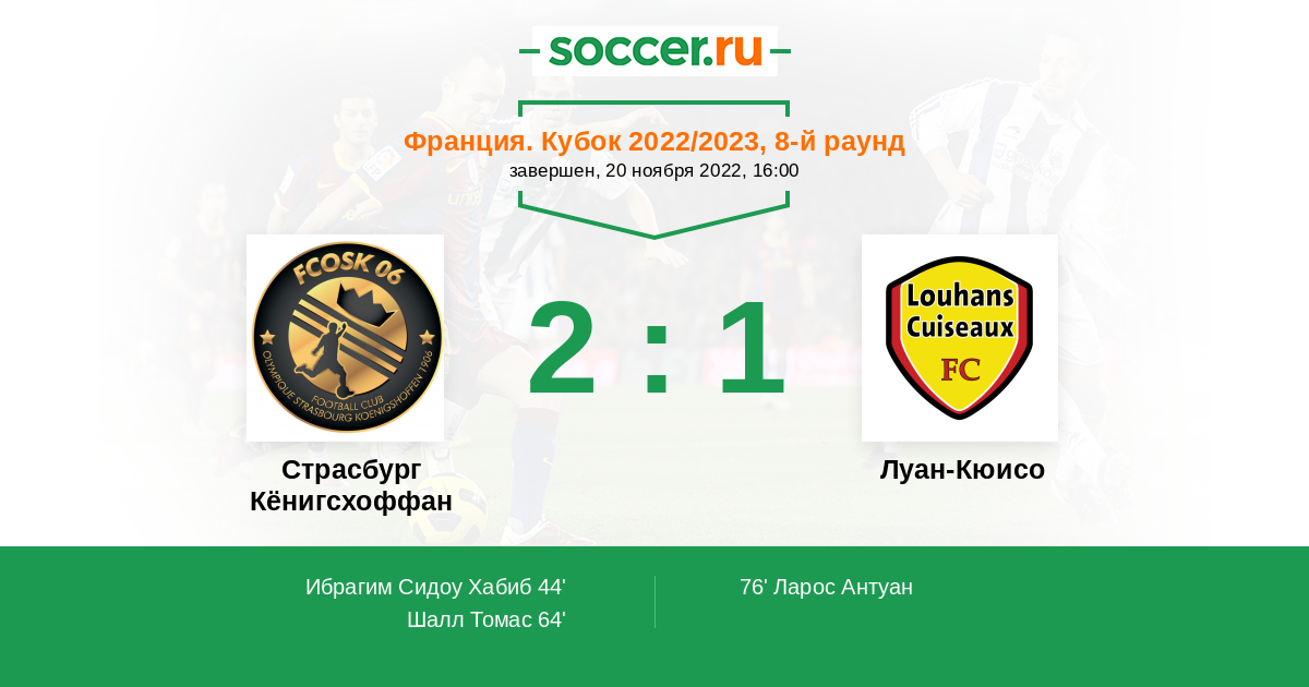 Протокол матча Страсбург Кёнигсхоффан против Луан-Кюисо