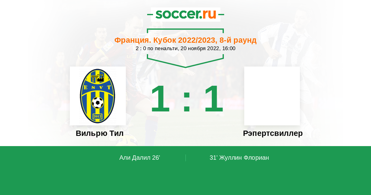 Протокол матча Вильрю Тил против Рэпертсвиллер