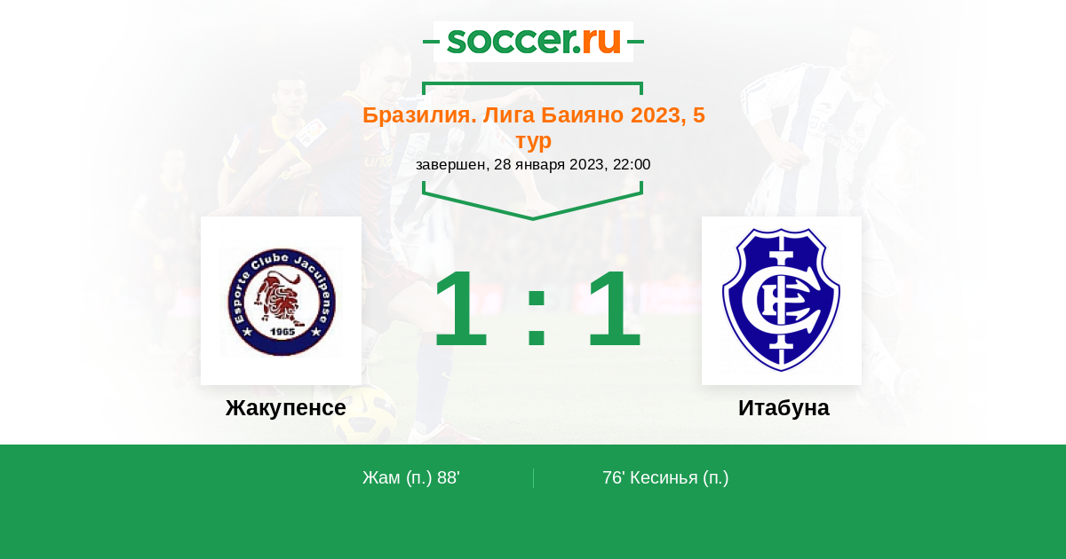 Протокол матча Жакупенсе против Итабуна