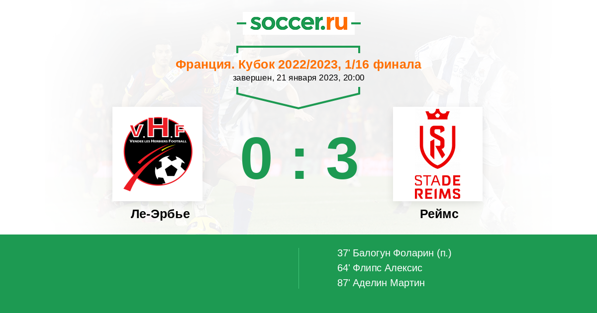 Протокол матча Ле-Эрбье против Реймс