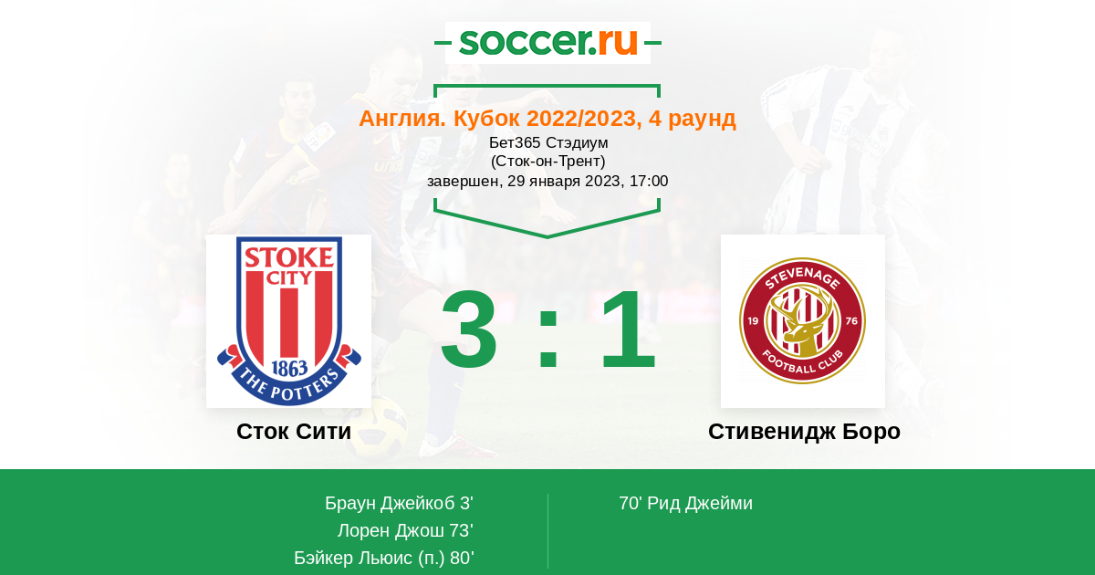 Протокол матча Сток Сити против Стивенидж Боро