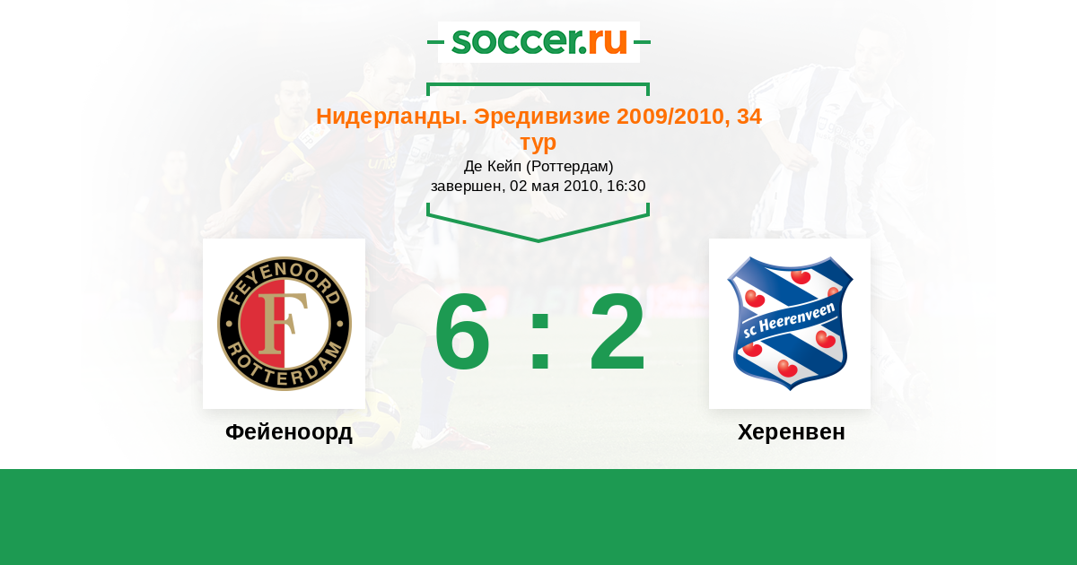 Нидерланды. Эредивизи 14.11.2010 Фейеноорд Логотип футбольный клуб Фейеноорд (Роттердам) 2:2 Логотип футбольный клуб Херенвен Херенвен