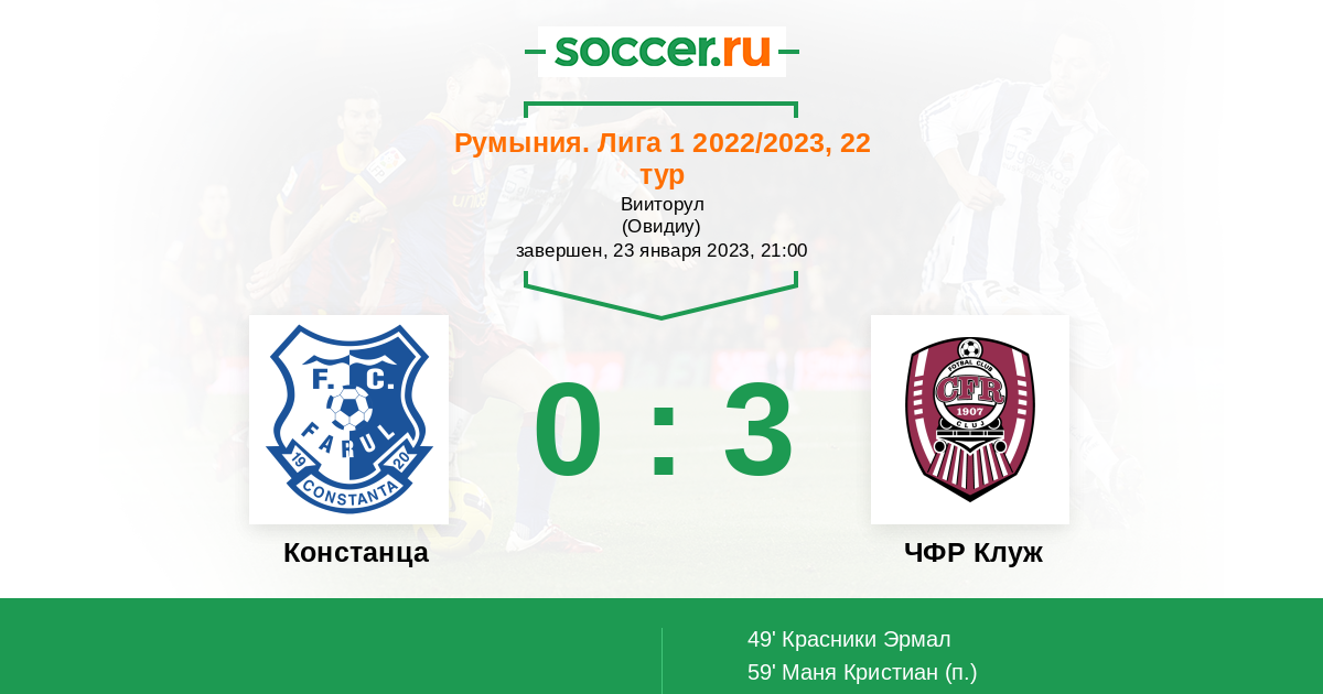 Протокол матча Фарул против ЧФР Клуж