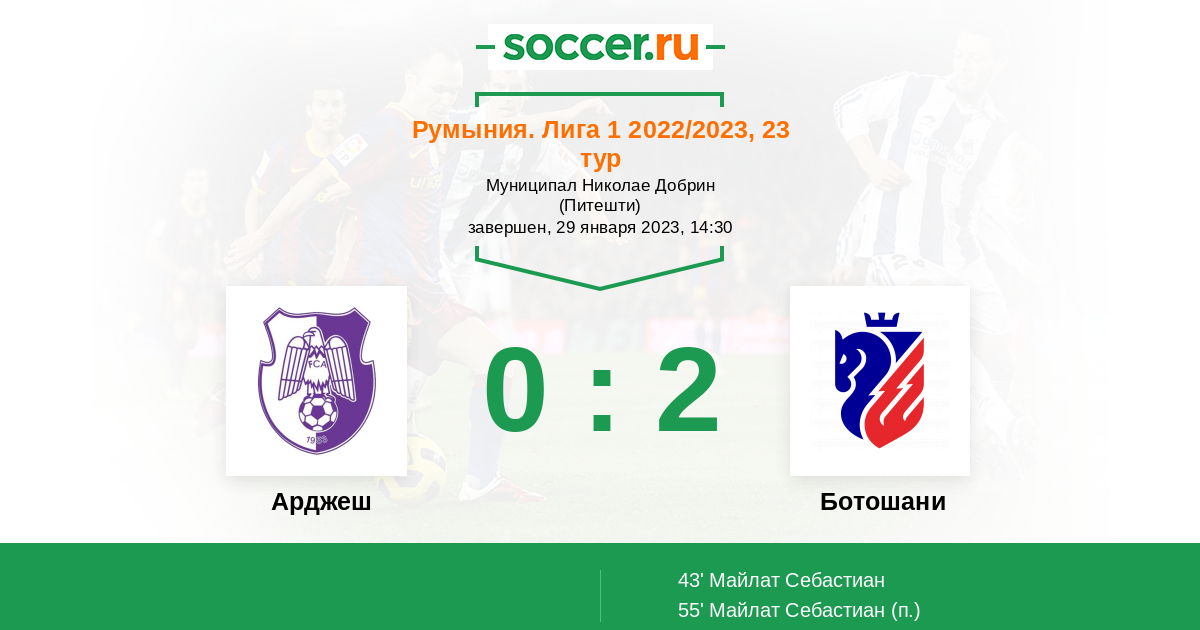 Протокол матча Арджеш против Ботошани