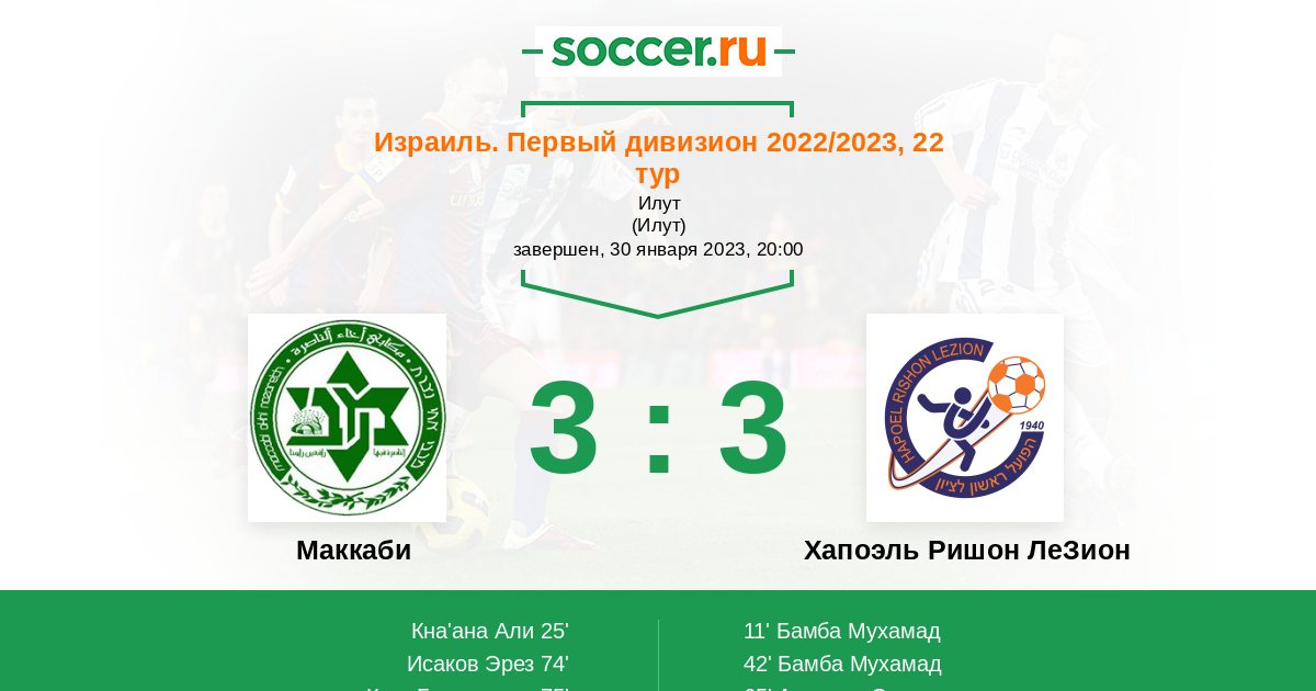 Протокол матча Маккаби против Хапоэль Ришон ЛеЗион