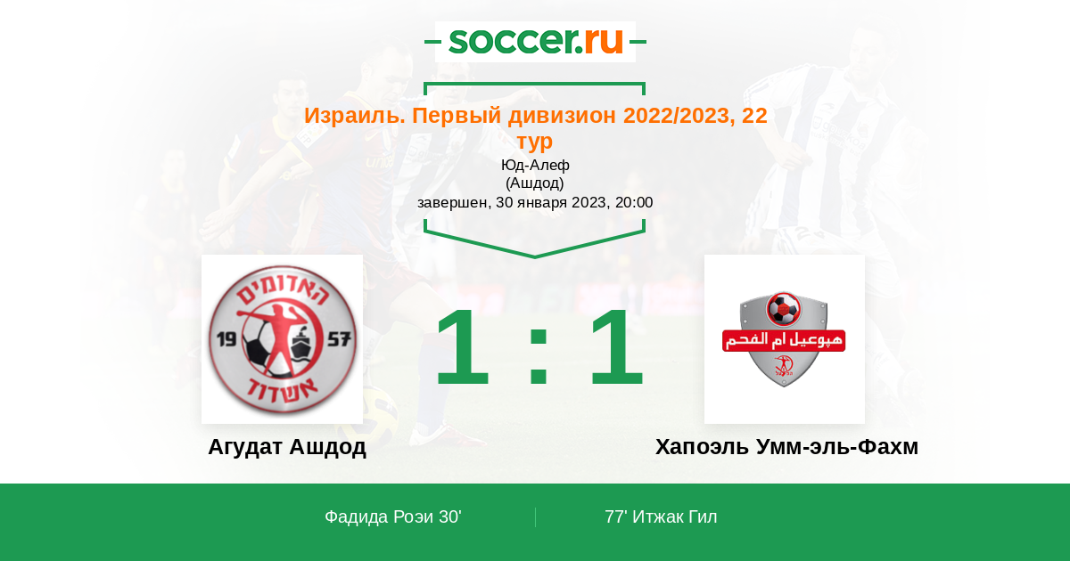 Протокол матча Агудат Ашдод против Хапоэль Умм-эль-Фахм