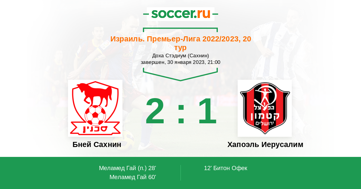 Протокол матча Бней Сахнин против Хапоэль Иерусалим