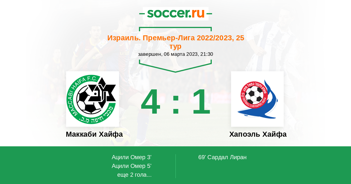 Протокол матча Маккаби Хайфа против Хапоэль Хайфа