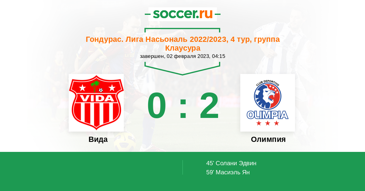 Протокол матча Вида против Олимпия