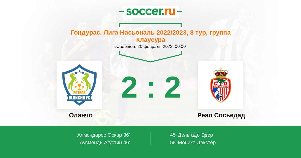 Протокол матча Оланчо против Реал Сосьедад