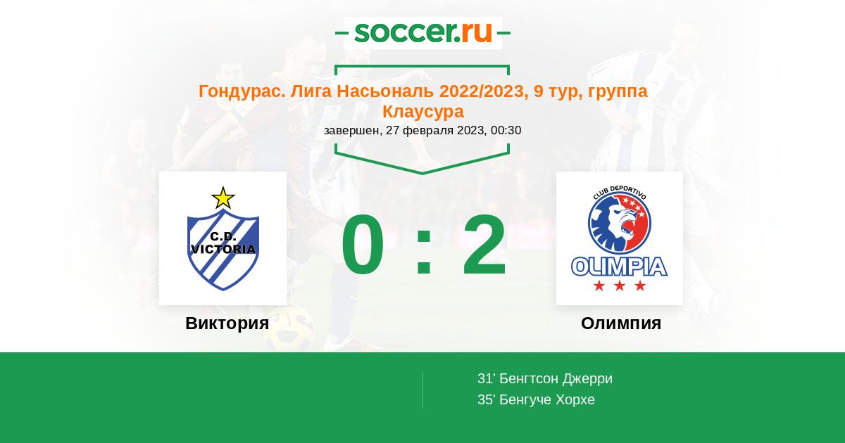 Протокол матча Виктория против Олимпия