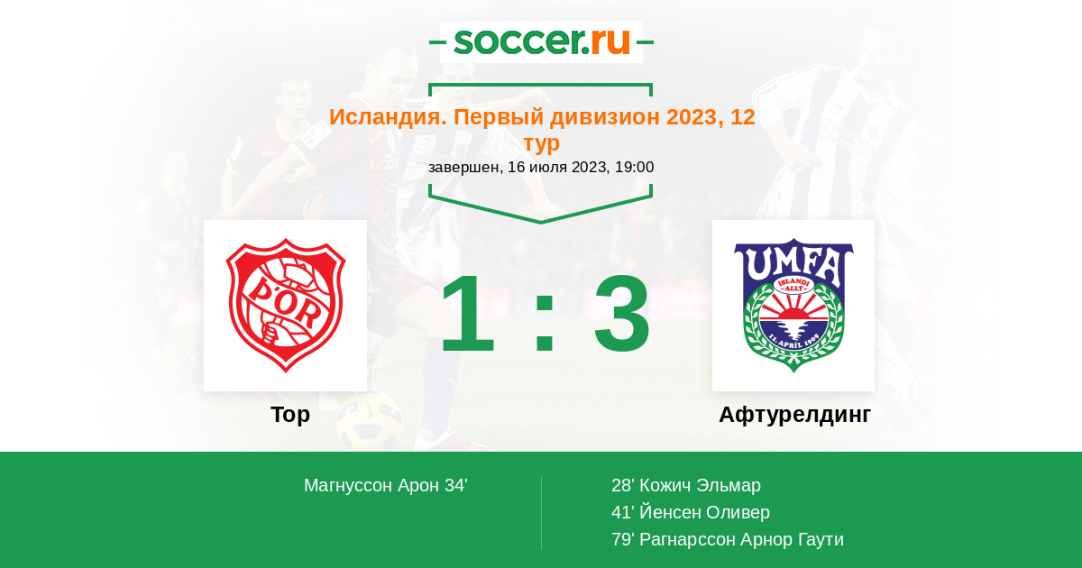 Протокол матча Тор против Афтурелдинг