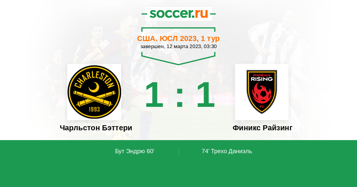Протокол матча Чарльстон Бэттери против Финикс Райзинг