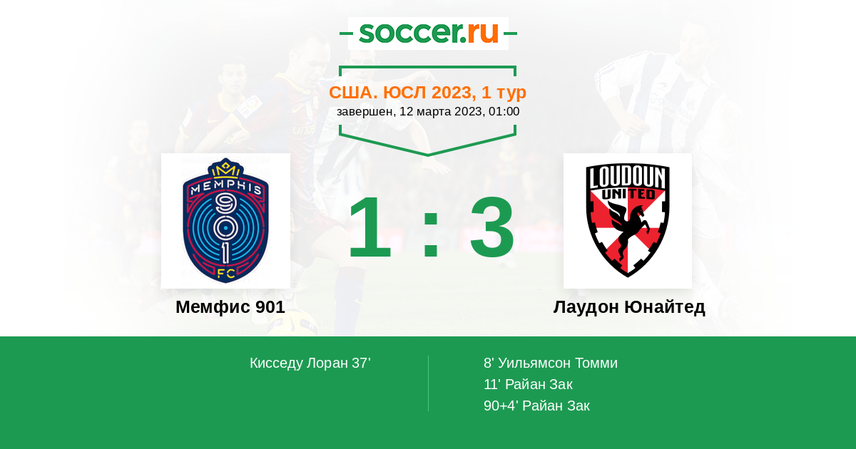 Протокол матча Мемфис 901 против Лаудон Юнайтед