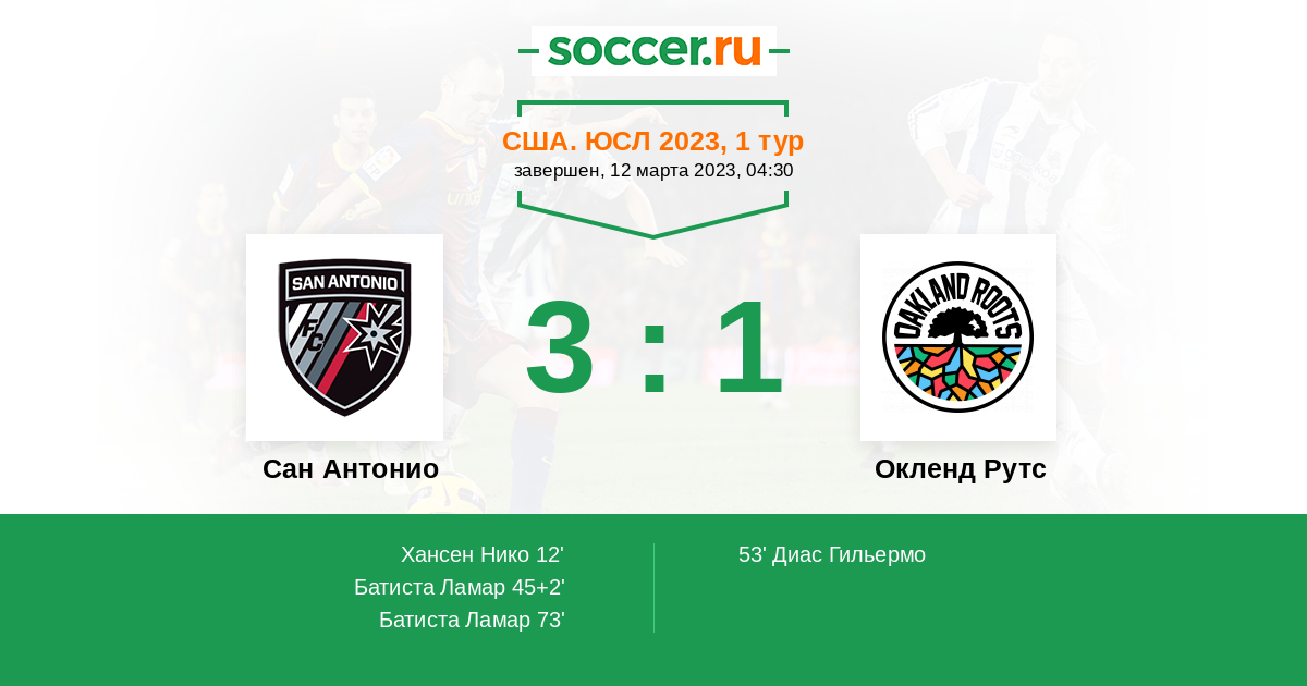 Протокол матча Сан Антонио против Окленд Рутс
