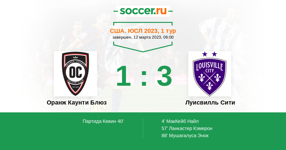 Протокол матча Оранж Каунти Блюз против Луисвилль Сити