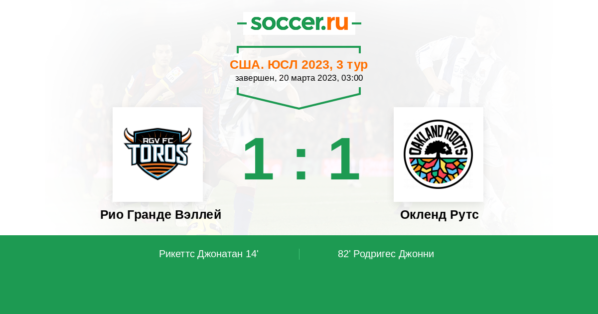 Протокол матча Рио Гранде Вэллей против Окленд Рутс