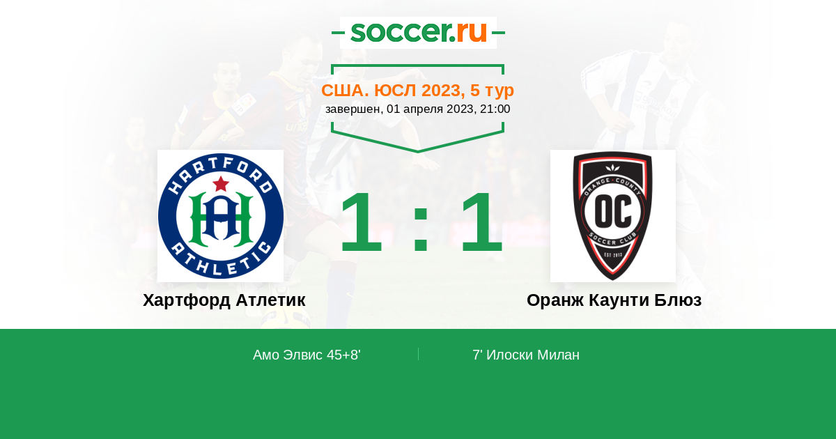 Протокол матча Хартфорд Атлетик против Оранж Каунти Блюз