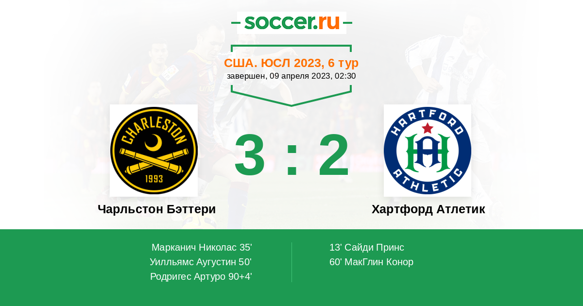 Протокол матча Чарльстон Бэттери против Хартфорд Атлетик