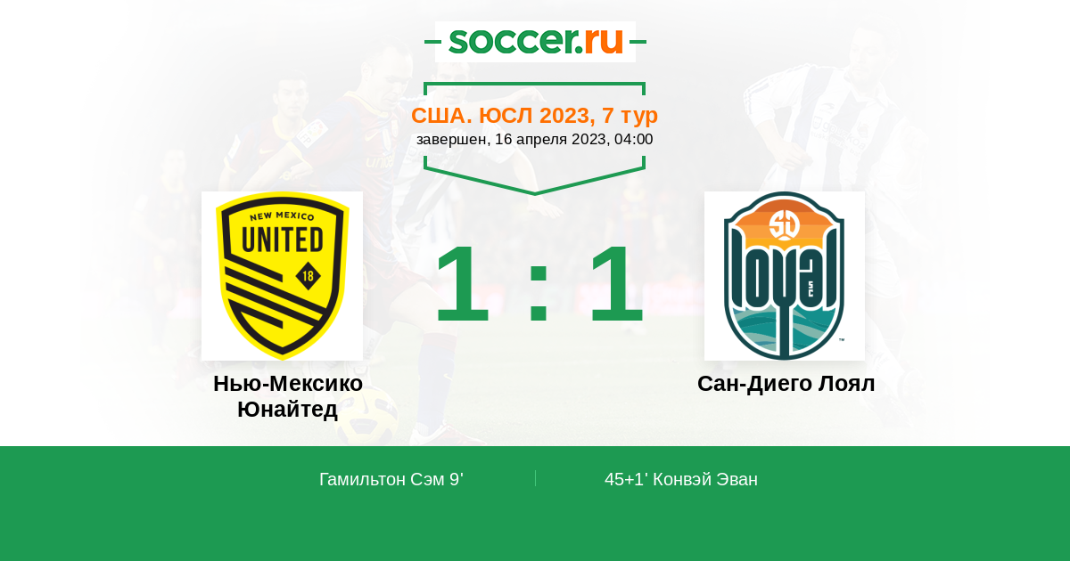 Протокол матча Нью-Мексико Юнайтед против Сан-Диего Лоял