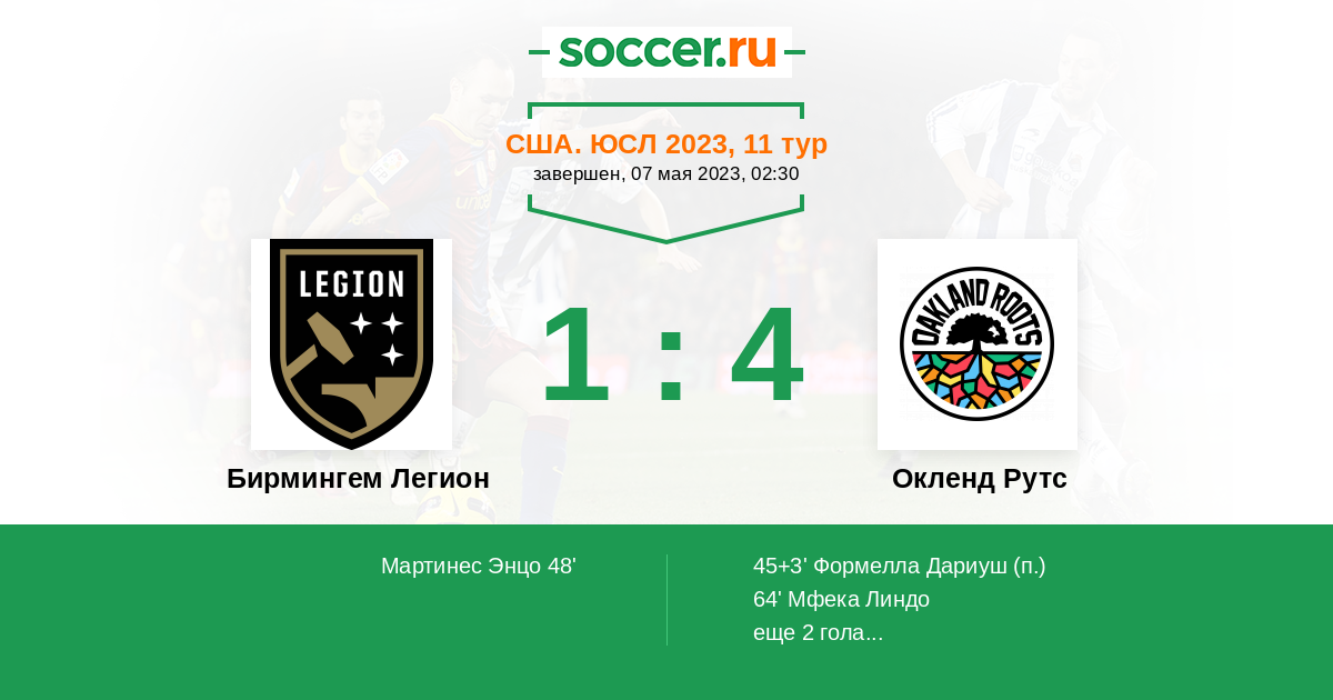 Протокол матча Бирмингем Легион против Окленд Рутс