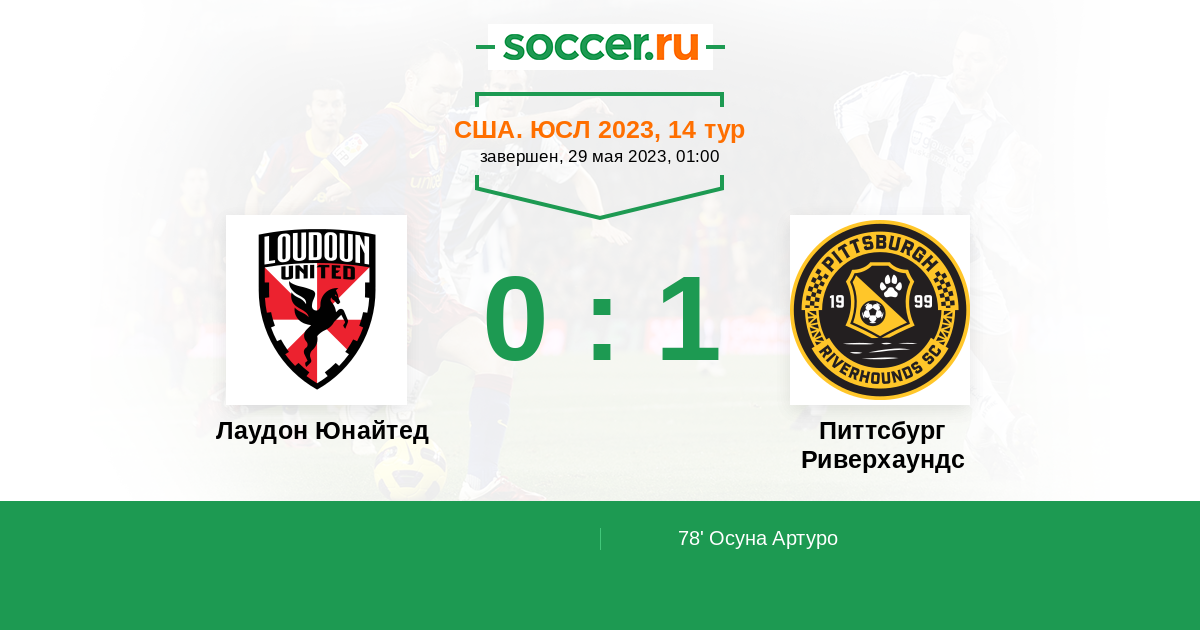 Протокол матча Лаудон Юнайтед против Питтсбург Риверхаундс