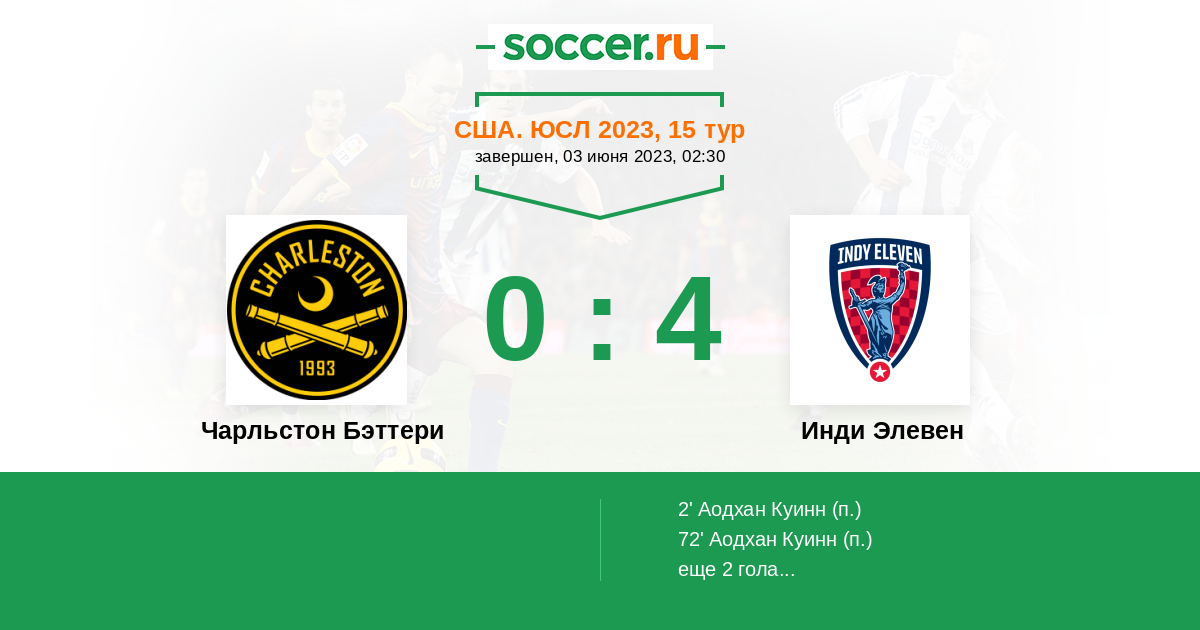 Протокол матча Чарльстон Бэттери против Инди Элевен
