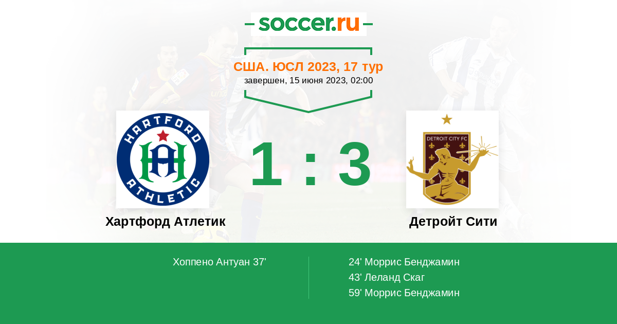 Протокол матча Хартфорд Атлетик против Детройт Сити