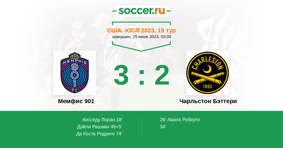 Протокол матча Мемфис 901 против Чарльстон Бэттери