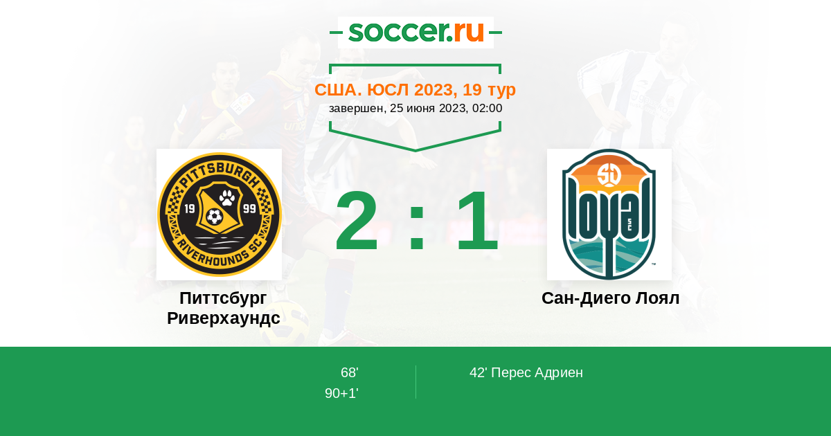 Протокол матча Питтсбург Риверхаундс против Сан-Диего Лоял