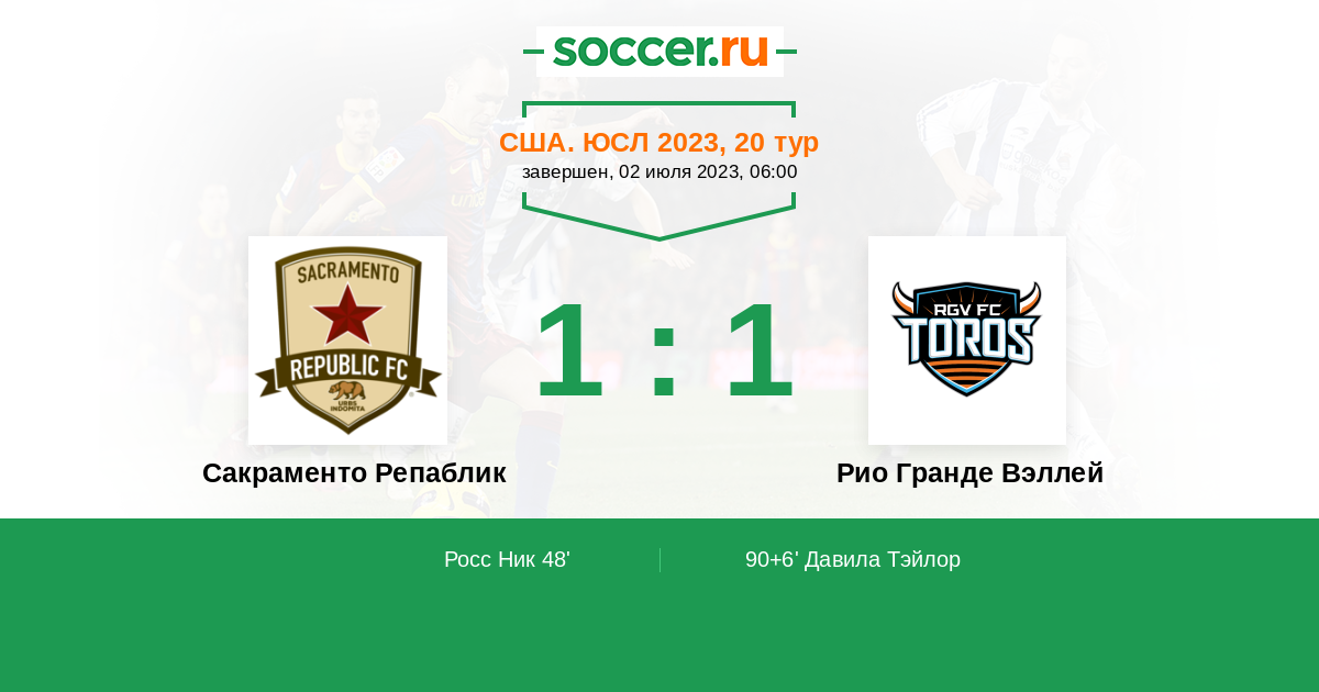 Протокол матча Сакраменто Репаблик против Рио Гранде Вэллей