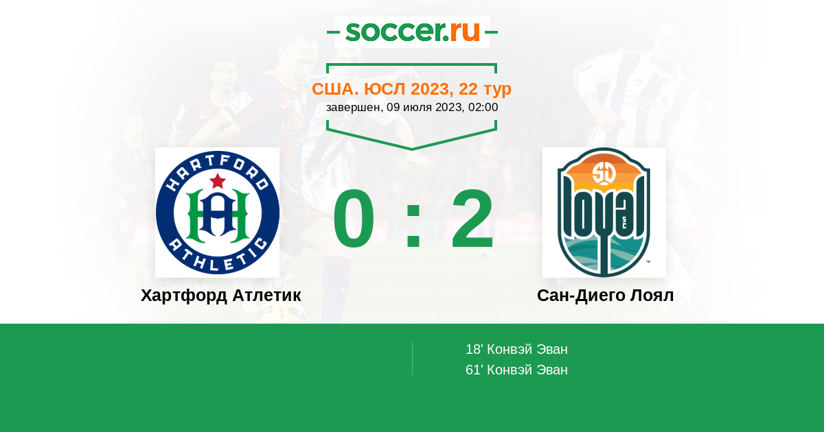 Протокол матча Хартфорд Атлетик против Сан-Диего Лоял