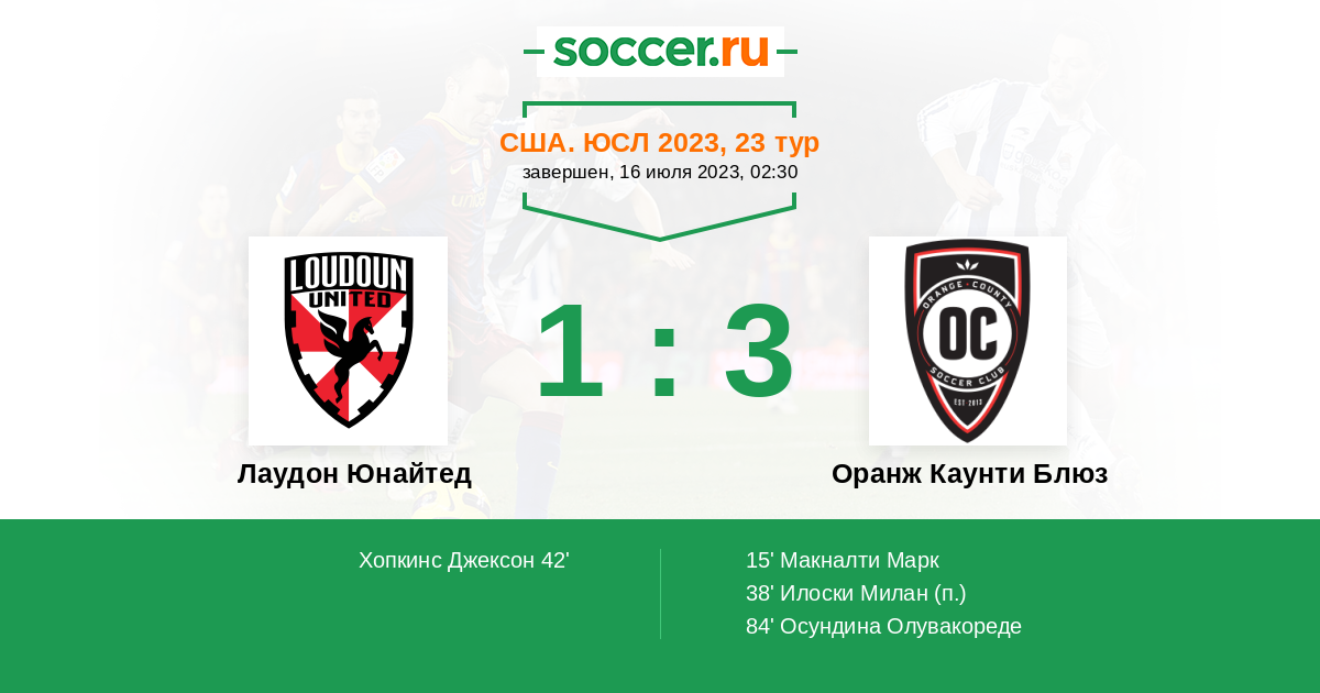Протокол матча Лаудон Юнайтед против Оранж Каунти Блюз