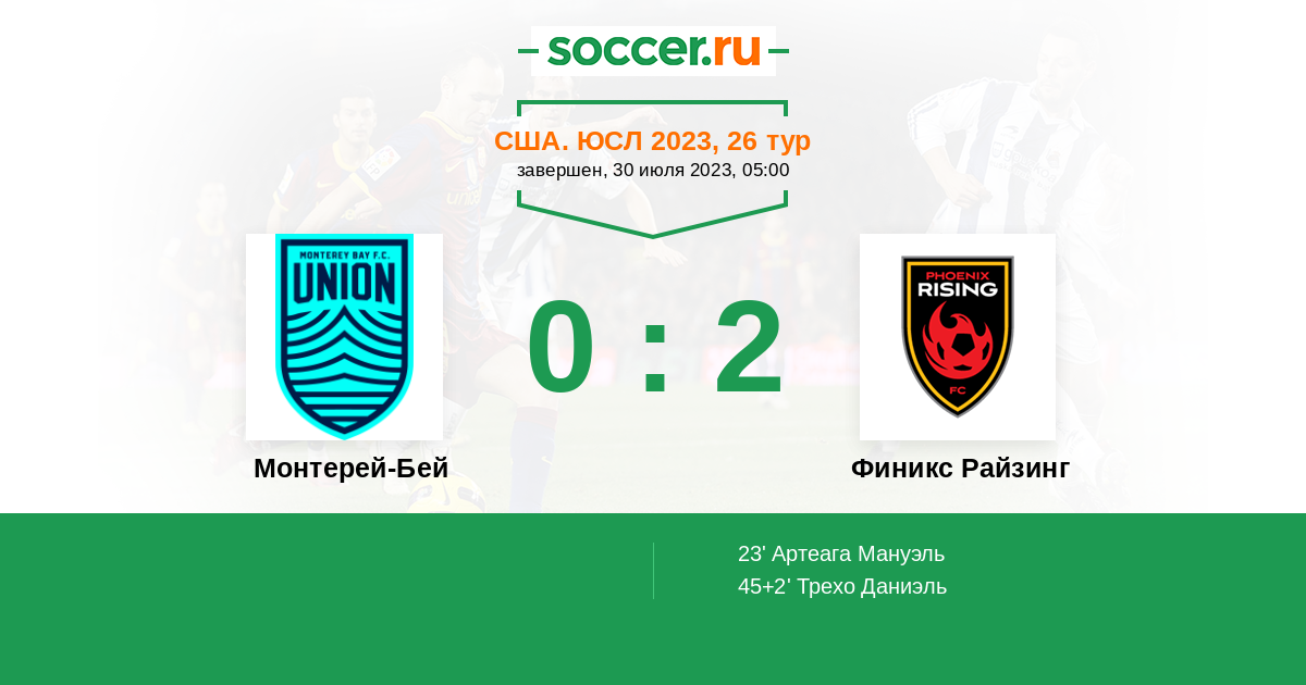 Протокол матча Монтерей-Бей против Финикс Райзинг
