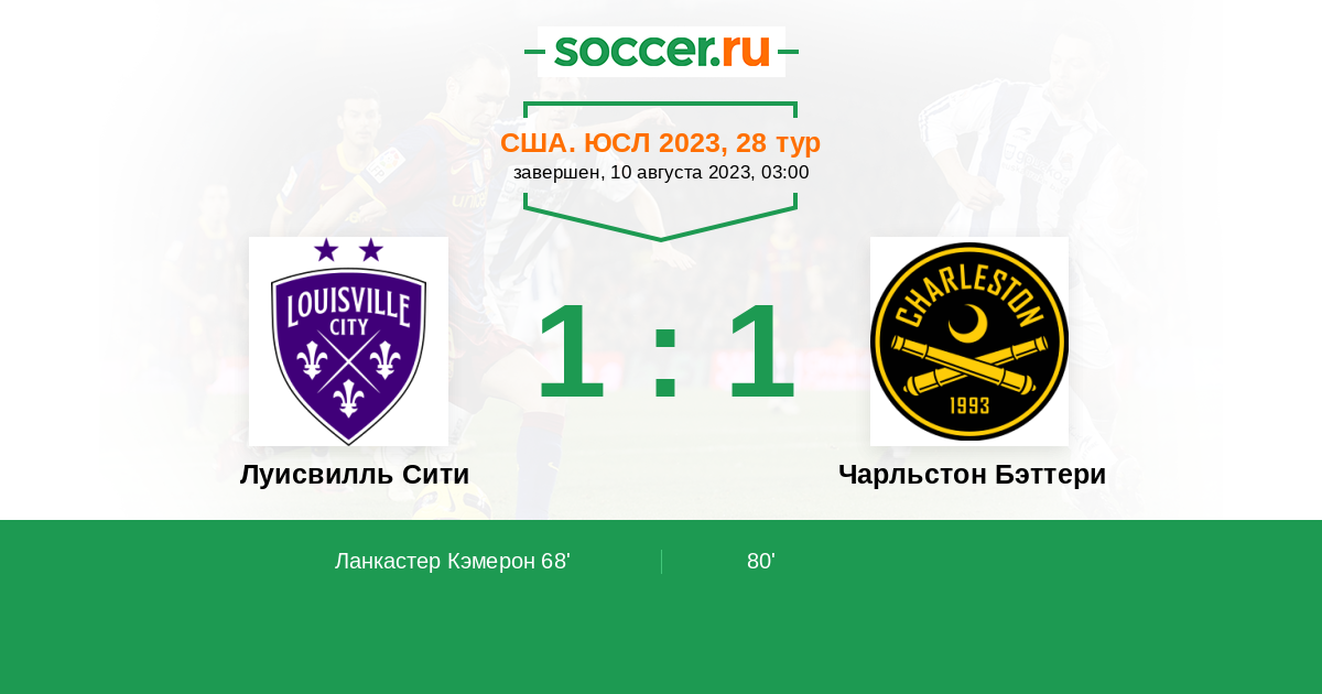 Протокол матча Луисвилль Сити против Чарльстон Бэттери