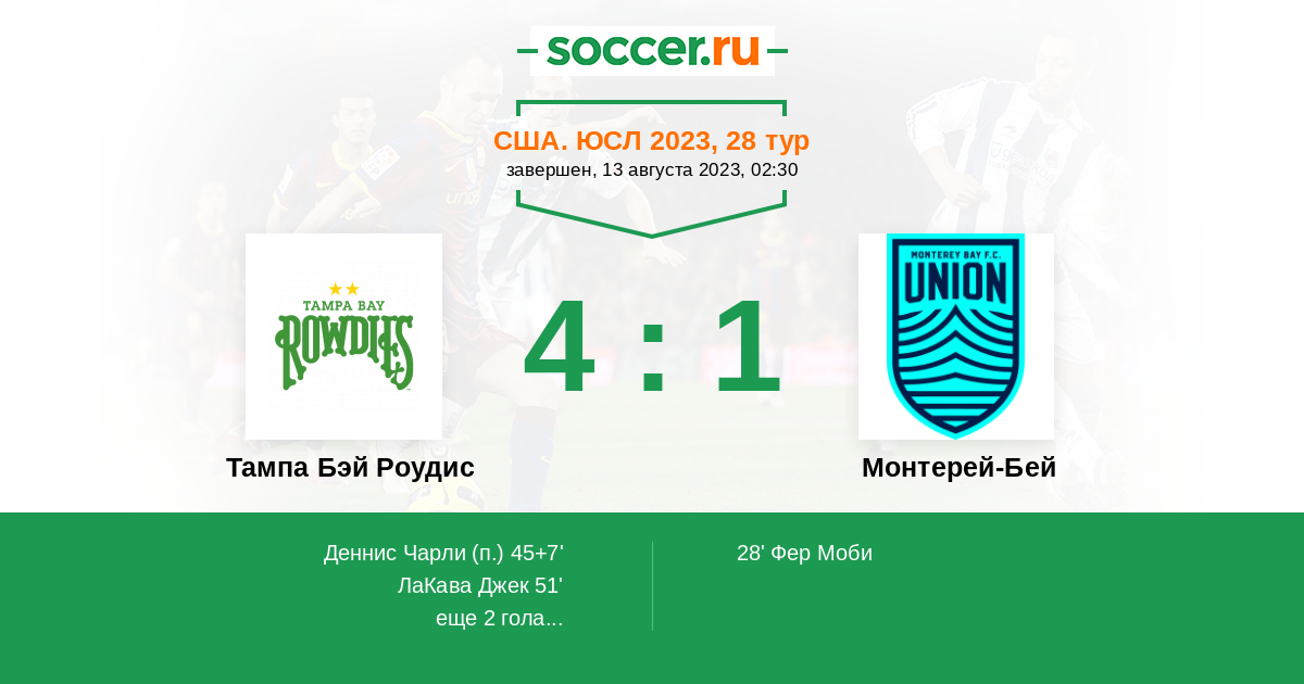 28' (0:1) Фер Моби (13) (Бун Чейс (31))