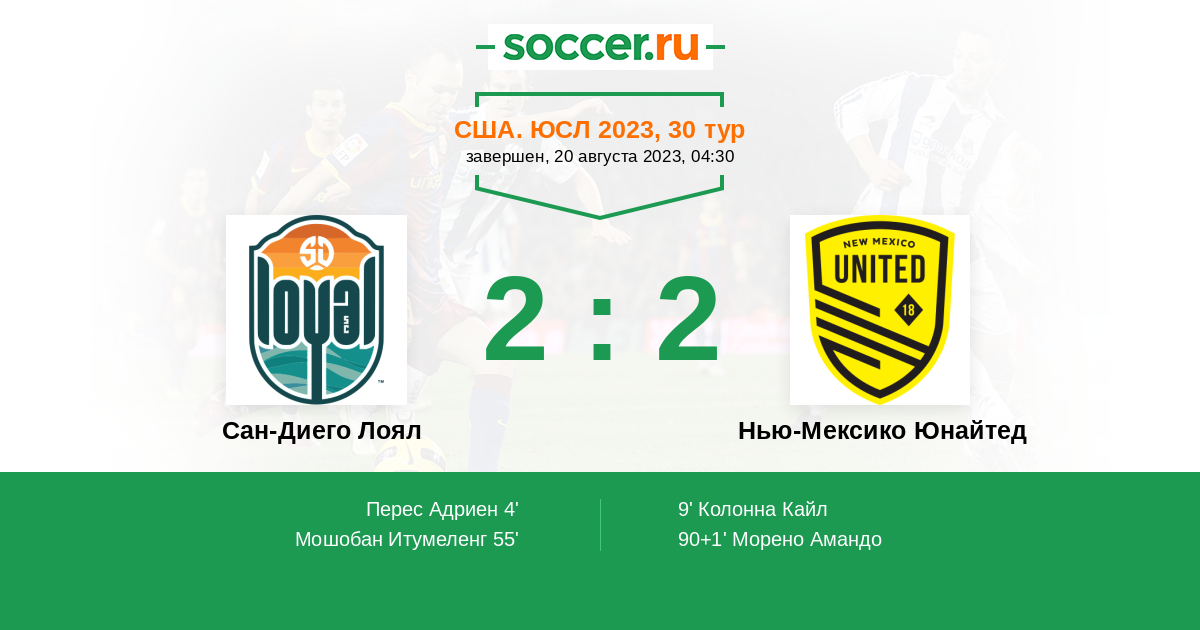 Протокол матча Сан-Диего Лоял против Нью-Мексико Юнайтед
