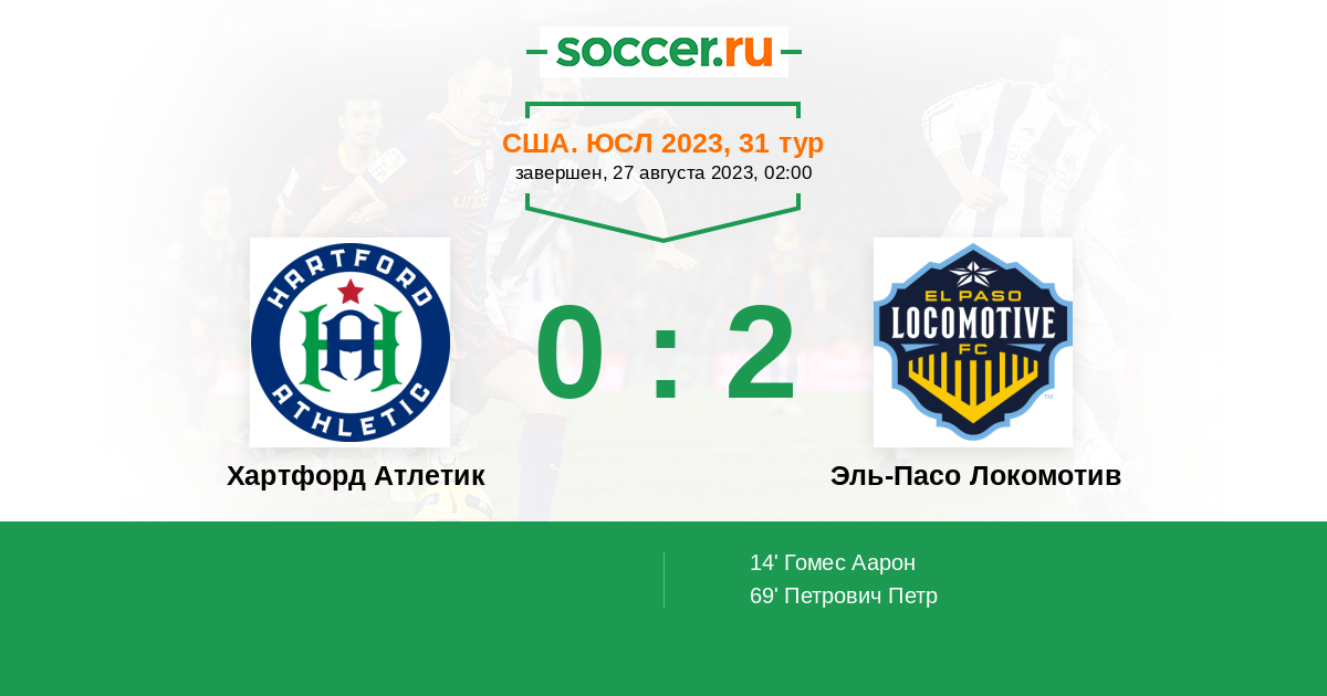 Протокол матча Хартфорд Атлетик против Эль-Пасо Локомотив