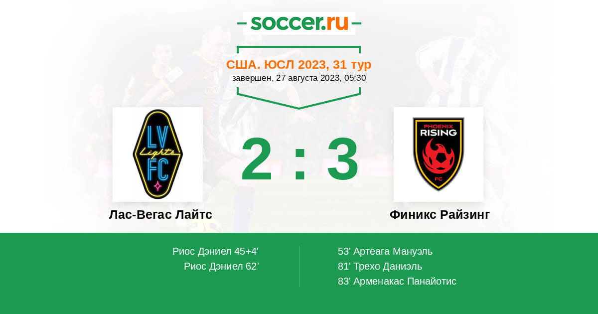 Протокол матча Лас-Вегас Лайтс против Финикс Райзинг