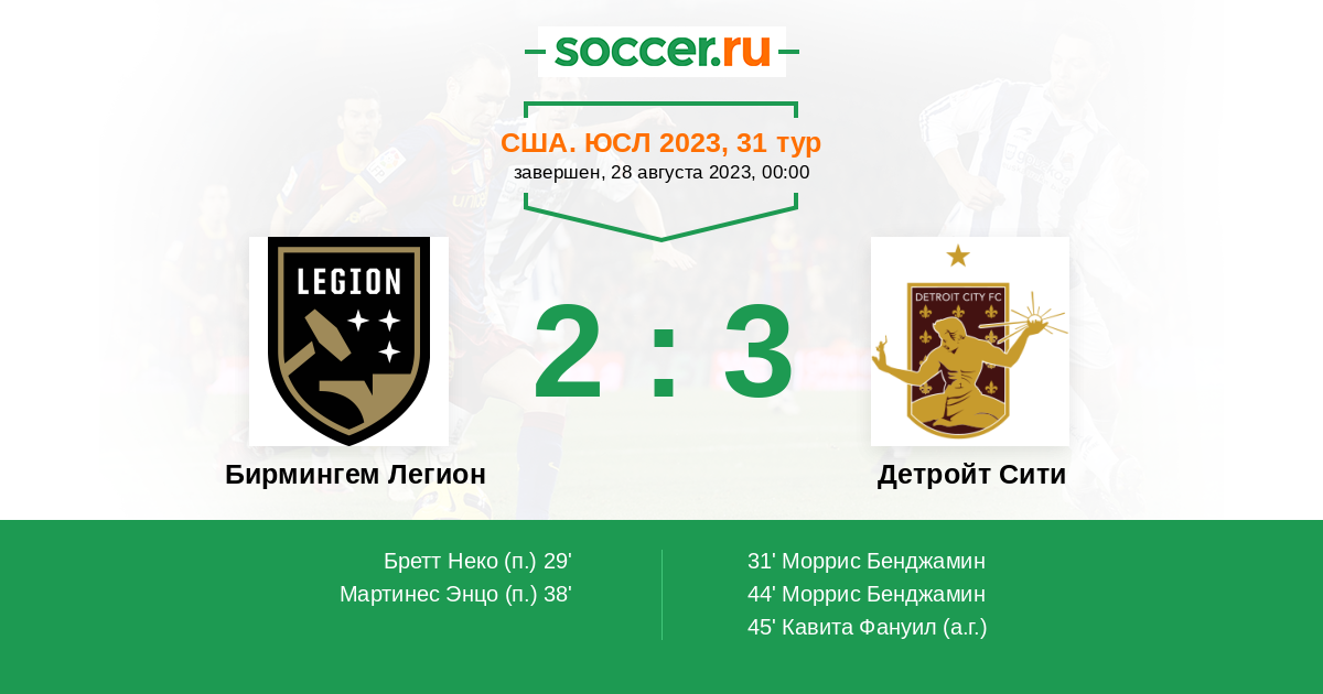 Протокол матча Бирмингем Легион против Детройт Сити