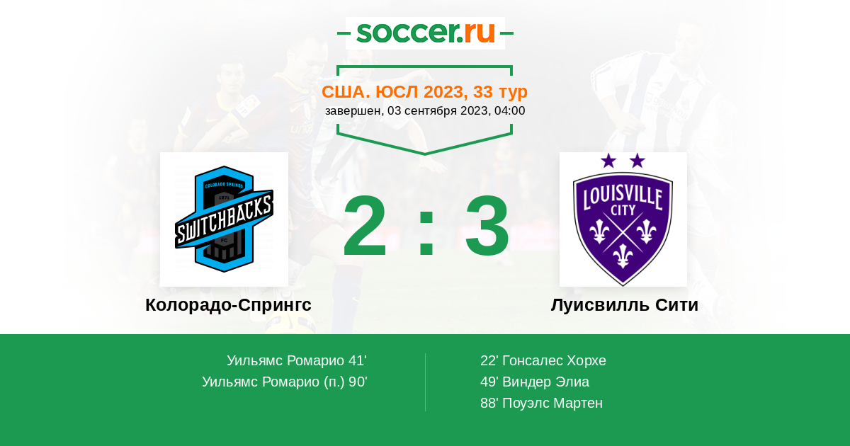 Протокол матча Колорадо-Спрингс против Луисвилль Сити