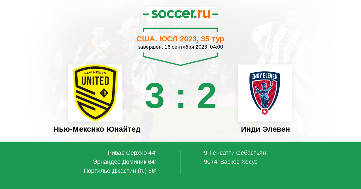 Протокол матча Нью-Мексико Юнайтед против Инди Элевен