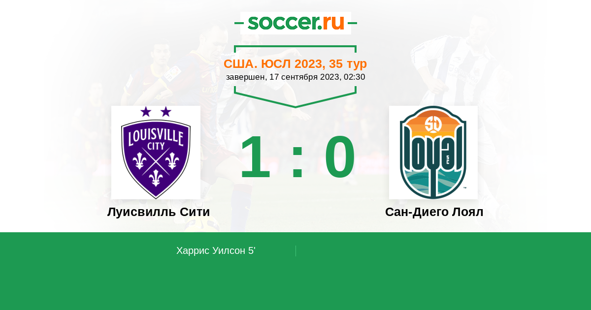 Протокол матча Луисвилль Сити против Сан-Диего Лоял