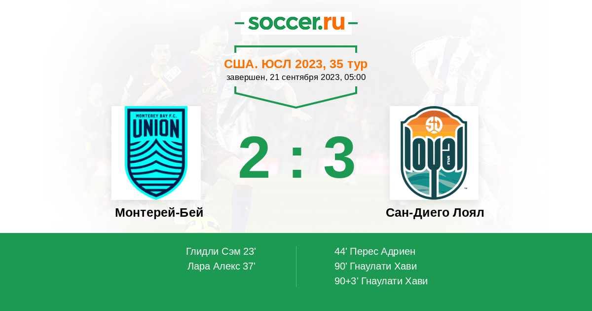 Протокол матча Монтерей-Бей против Сан-Диего Лоял