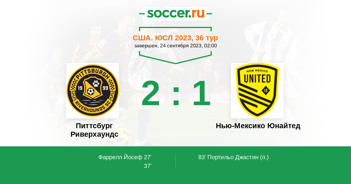 Протокол матча Питтсбург Риверхаундс против Нью-Мексико Юнайтед